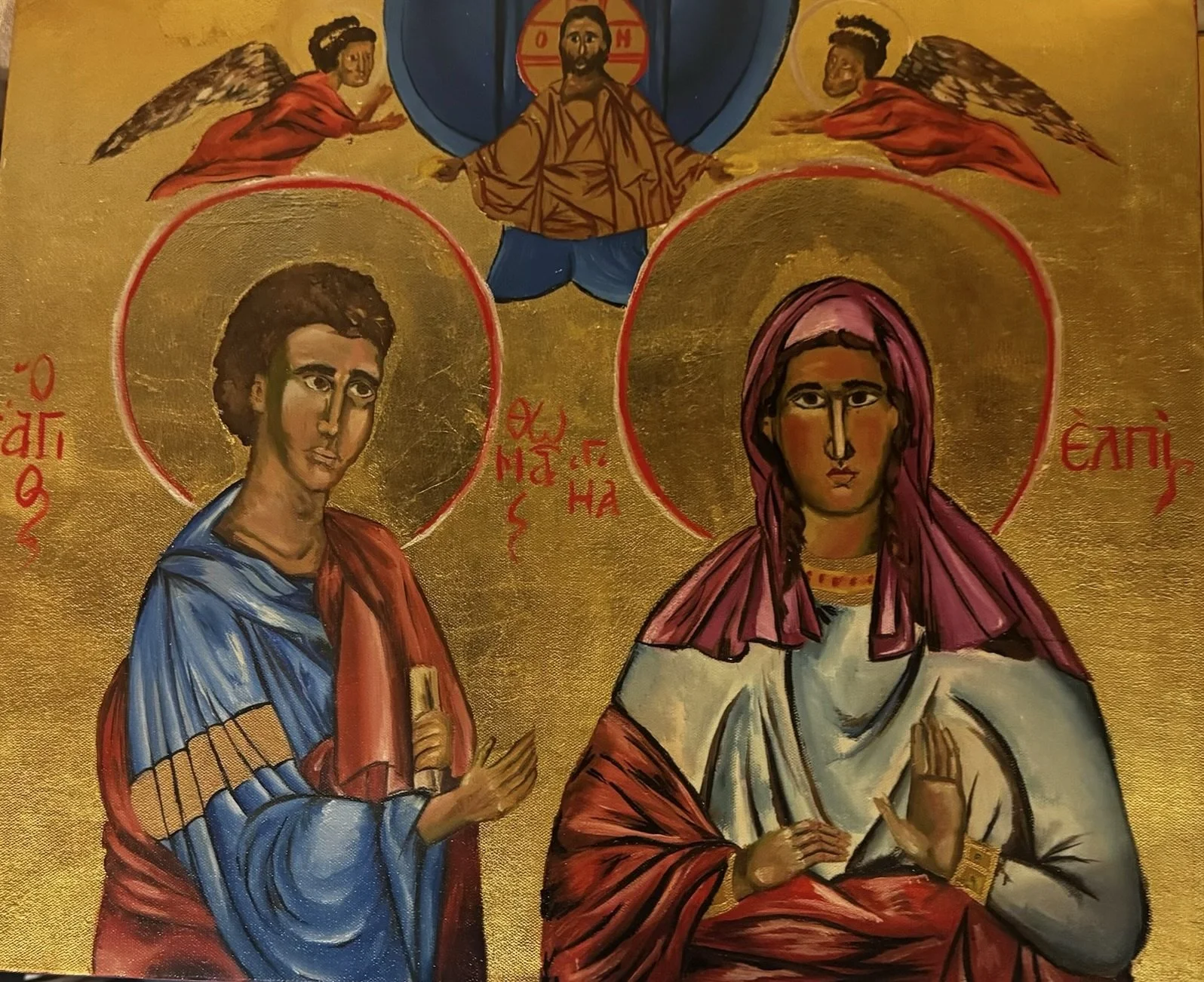 St. George, Virgin Mary, and Archangel Michael St. Thomas and St. Elpida St. George Jesus Christ St. Kyriakos Jesus Christ St. Jude Thaddeus Virgin Mary and Baby Jesus